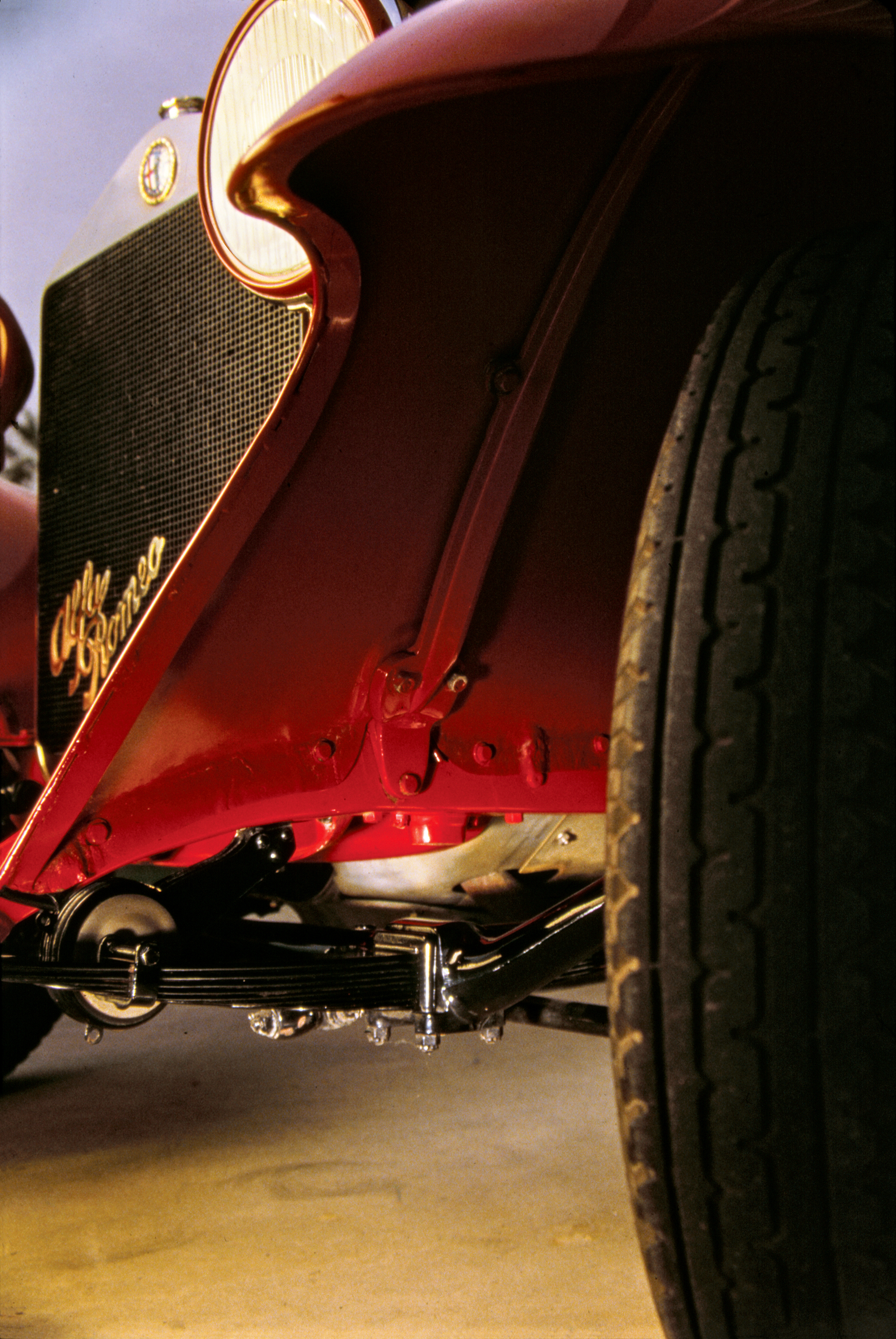 This photo was also art directed to render with delicate highlight the elegant upsweep of the Zagato fender as it matches Merosi's beautiful graphic design of the Alfa Romeo radiator signature.