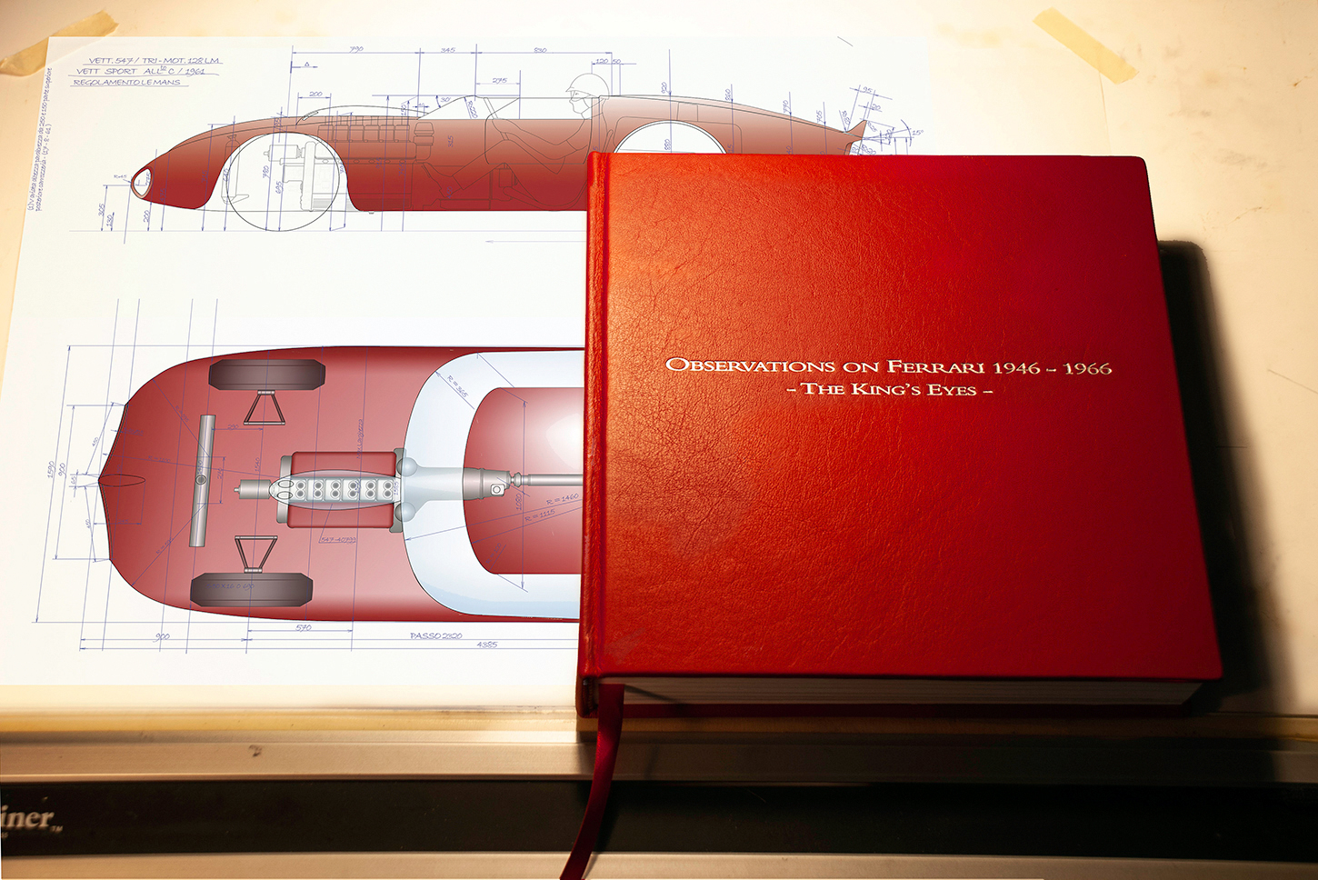 As implied above each edition of Observations on Ferrari 1946 - 1966 - The King’s Eyes - is produced on its own individual press run. The printed galley signatures are then Smyth sewn, in a special manner so that each two page spread moves forward to present itself to the reader. This unusual binding method also allows your edition to lay perfectly flat. Each edition is then hand bound in the finest leather. For this edition it is a superb quality 1.52 oz Plonge garment grade red leather from our long time source in Napa.